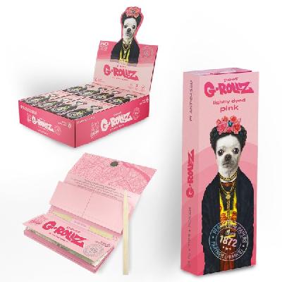 Estos papeles G-Rollz se elaboran en Francia utilizando fibras de cáñamo orgánicas finamente prensadas y savia de árbol de acacia como línea de encía totalmente natural. Todos los ingredientes son naturales para brindar una experiencia de rodar pura. Hay 50 hojas del tamaño de ´1¼´ en cada folleto junto con 50 puntas de filtro y un atizador de bambú. Hay 24 folletos en una caja/expositor. Estas son obras de arte exclusivas de Pets Rock. La autenticidad de cada folleto se puede verificar individualmente escaneando su código QR.